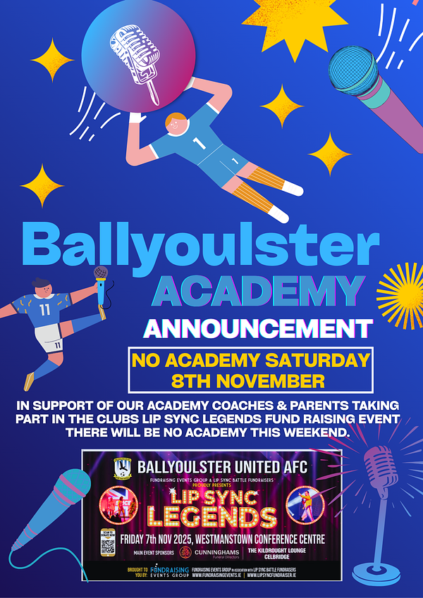 In support of our Academy Coaches & Parents taking part in the clubs Lip Sync Legends Fund Raising Event there will be no academy this weekend.